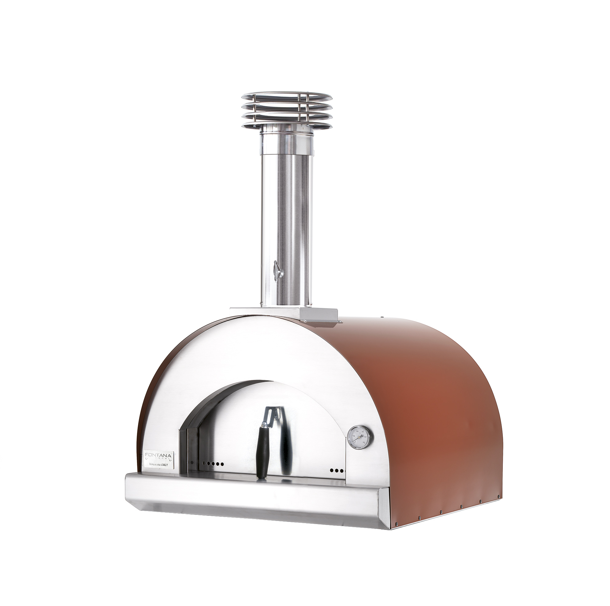 Margherita da appoggio, il forno a legna da esterno, a cottura diretta, della linea Forni Pizza di Fontana Forni: forno a cottura diretta per gli amanti della tradizionale pizza italiana.