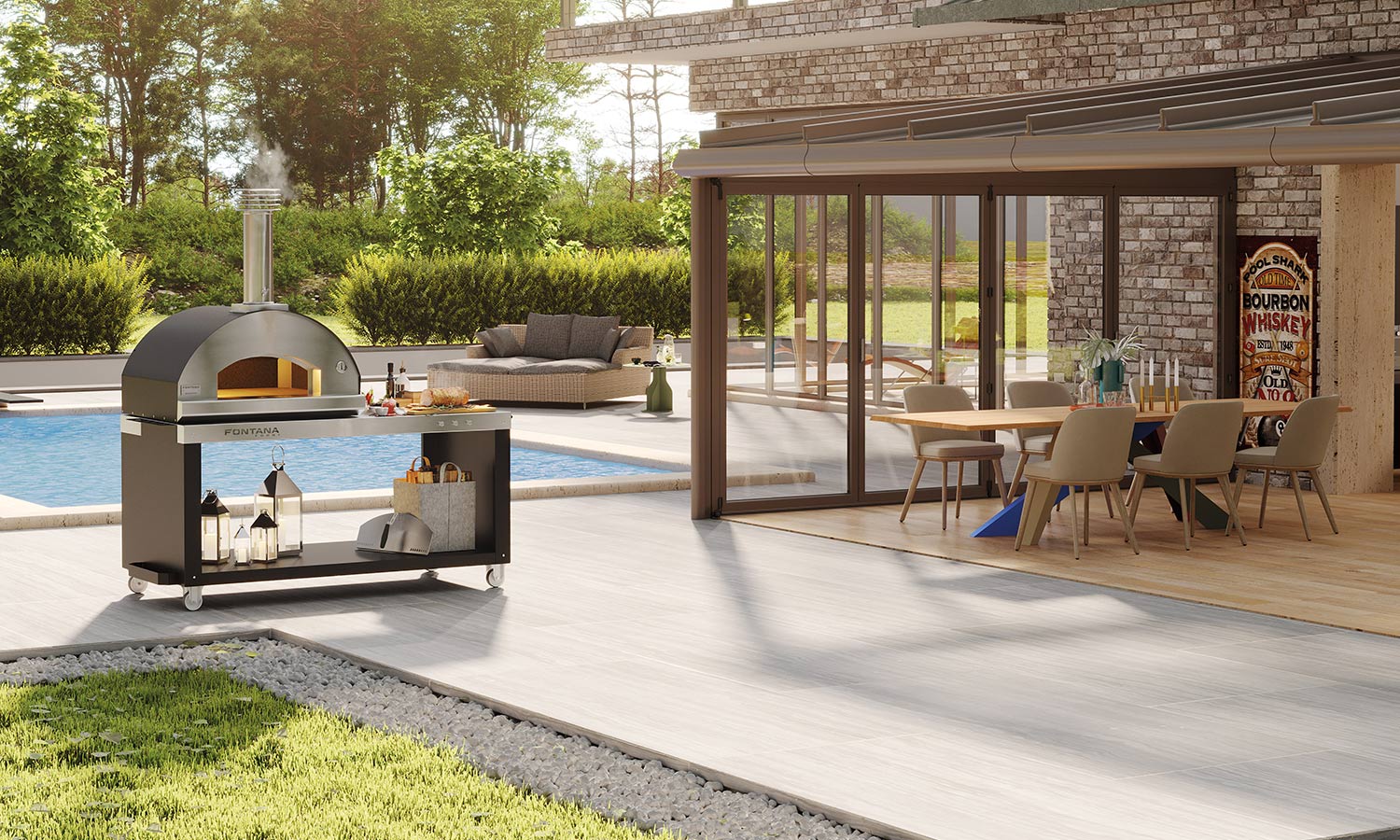 Una vera e propria cucina da esterno, una stazione di cottura multifunzione per la preparazione della pizza e di tutte le altre pietanze e, soprattutto, come base di appoggio per i forni Fontana.