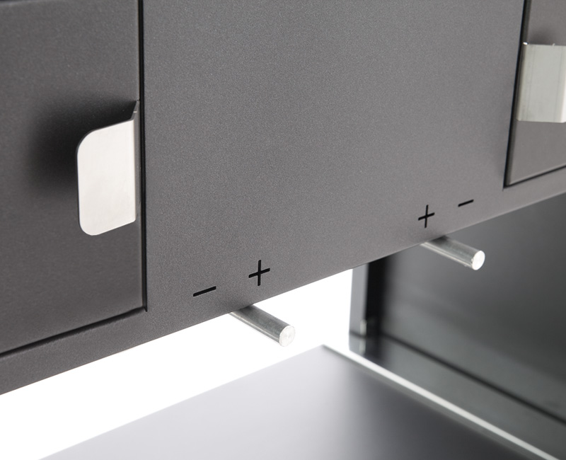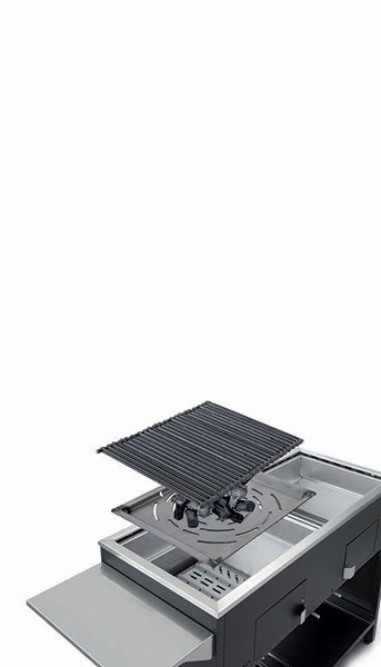 La superficie di cottura è di 45×110 cm ideale per circa 15 coperti. Il carrello è dotato di ruote e può contenere ordinatamente tutti gli accessori in dotazione.