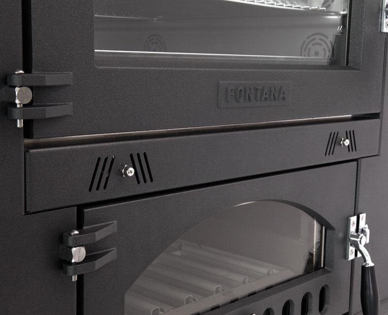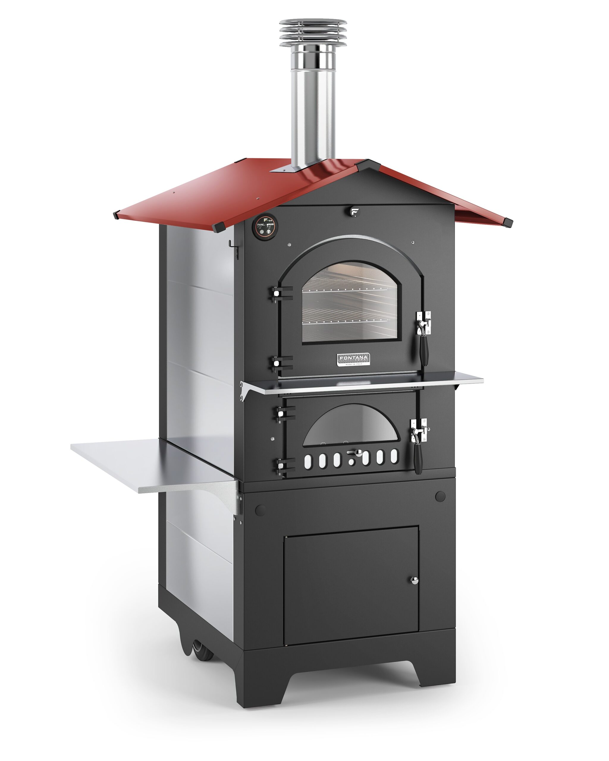 Il grande classico di Fontana che si rinnova! 20 anni fa la nascita di Gusto ed ora proponiamo Rosso con questo delicato restyling senza dimenticarne i tratti tradizionali che hanno fatto di questo prodotto il sogno di tutti gli appassionati di cucina. Forno dalla livrea in acciaio inox e acciaio verniciato antracite. Tetto verniciato Rosso. Camera di cottura su 3 livelli di acciaio inox e piastre refrattarie, dotata di doppia ventilazione e illuminazione. Fornito completo di griglie, padelle di cottura, canna fumaria in acciaio inox, piani di appoggio laterale, frontale e ravviva brace. Dotato di termometro e contaminuti.